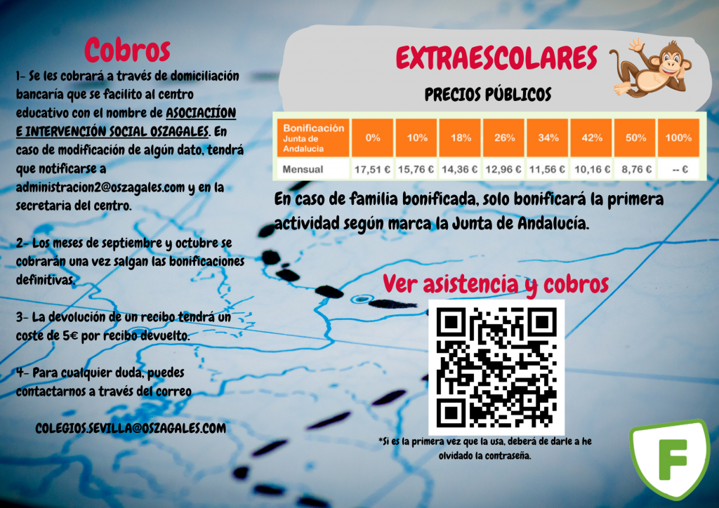 Bonificación: Solo se bonifica una actividad extraescolar, tal y como establece la Junta de Andalucía.