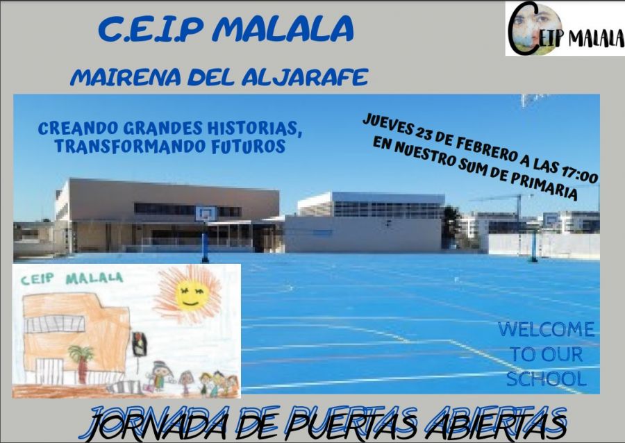 Jornada de puertas abiertas febrero 2, 2023 CEIP Malala Eventos No hay comentarios en Jornada de puertas abiertas El próximo mes de febrero, tendremos nuestra jornada de puertas abiertas con vistas a la próxima escolarización del curso escolar... Continuar leyendo